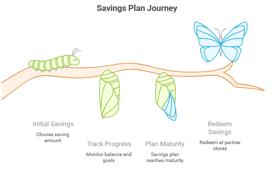- Once your plan matures, redeem your savings at Sri Vinayaga Jewellery or Verified partner local stores. Choose from jewellery, mobiles, electronics, furniture, and more.
